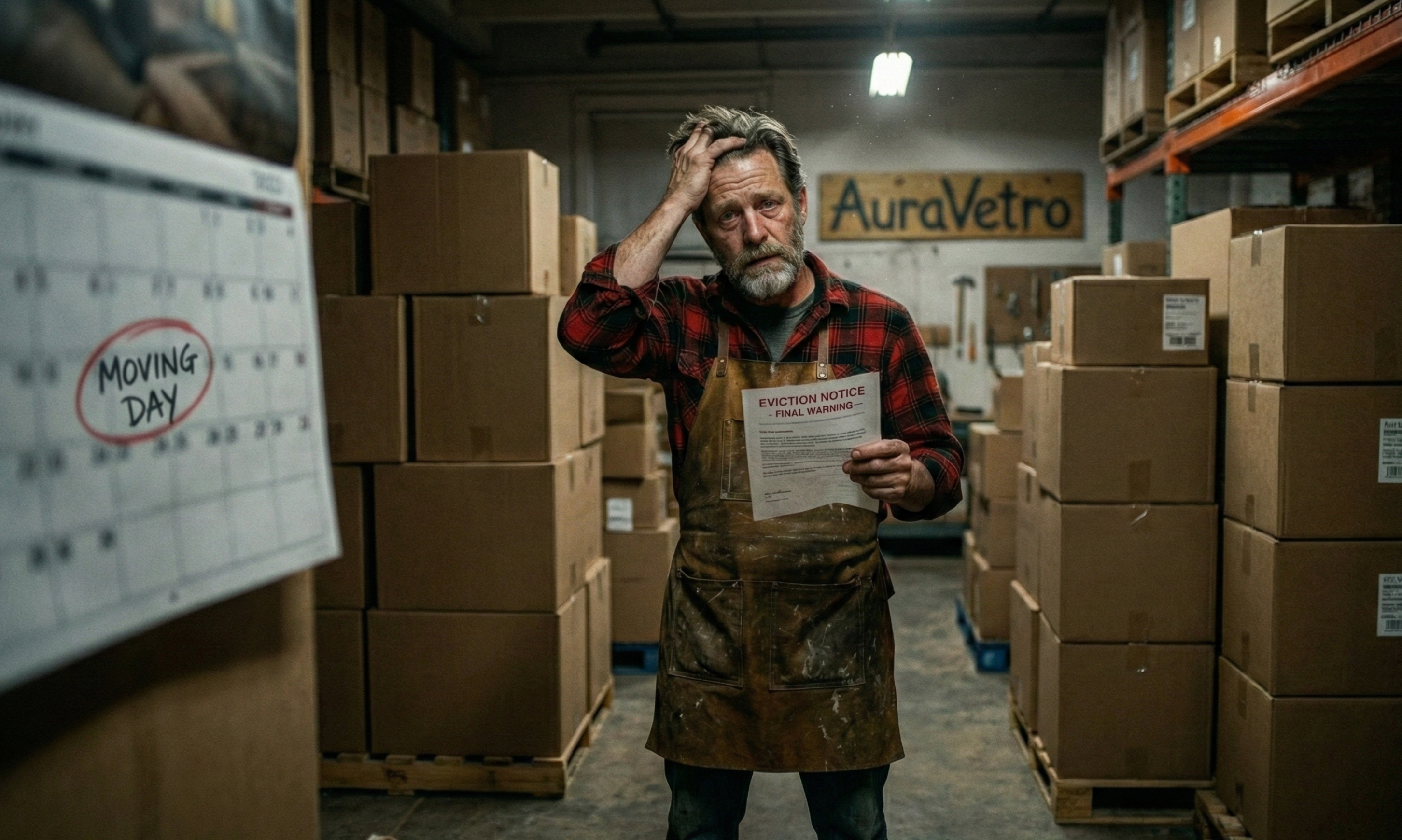 The warehouse landlord doesn’t care about my story or the canceled contract. He just wants his space back. I’ve been given an ultimatum: I have until midnight this Thursday to remove all AuraVetro stock.